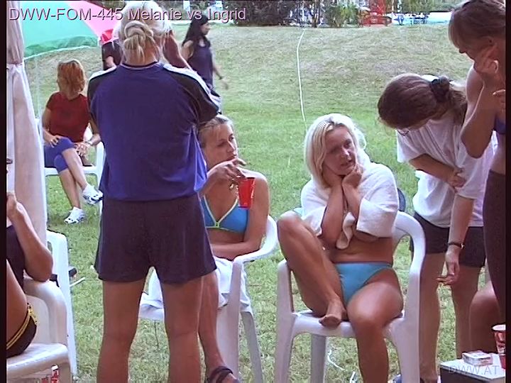 This is the first semi final from a summer event 1999 four girls lightweight elimination tournament participating Melanie, Ingrid, Lenka and Christie. There were special rules that the same submission hold or pin couldn’t get used twice to support those wrestlers who do not only know one single pin or one single submission hold. All matches were for best out of five falls. The first match was between feisty Ingrid and confident sporty Melanie. This was a hell of a fight with their team members supporting them in front of a large crowd. Great wrestling and some great memories !